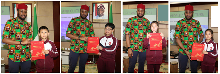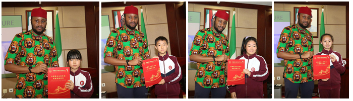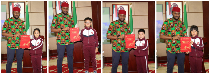活动尾声,尼日利亚驻华使馆为学生们颁发了“国务外事证书”,并合影留念。这张证书不仅是对同学们出色表现的认可,更是一份对未来的殷切期望。