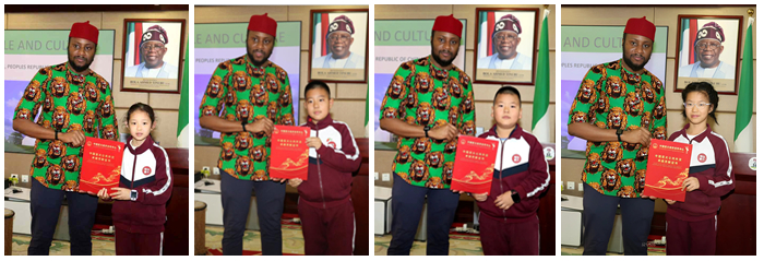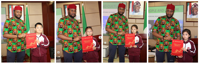 10月25日,北京尼日利亚驻华大使馆内青春洋溢,一场由中国亚太国际教育发展合作中心与尼日利亚驻华使馆联合主办的“未来精英研学”活动在此举行。淄博修文外国语学校的同学们参与了这场沉浸式外事实践,踏上了一场文化探索之旅。